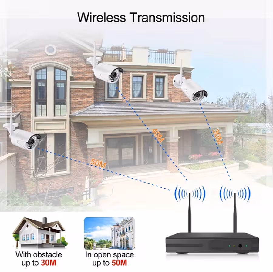 This security surveillance camera system, Include a Network NVR and 4 wireless camera.